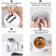 Stainless Steel Self Stirring Mug Auto Mixing Coffee Cup Cell Operated